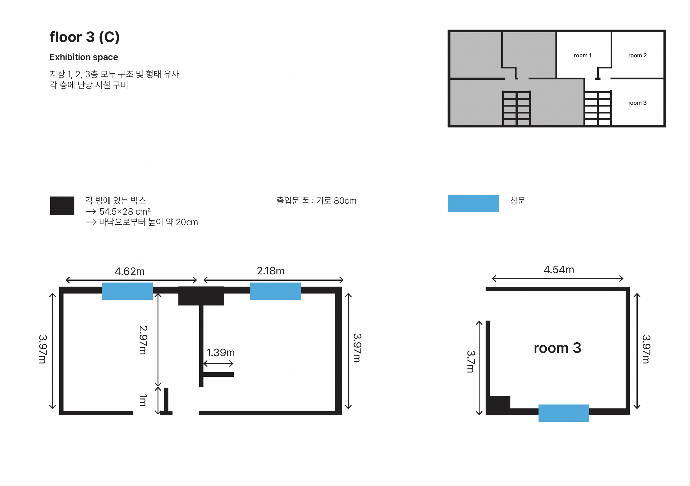 Due to the spatial characteristics of a one-room space, it is challenging to create a clear movement flow. The limited and narrow space increases the risk of artwork damage if too many people gather in one area. Therefore, it is essential to establish a well-defined flow of movement to ensure smooth circulation within the space.