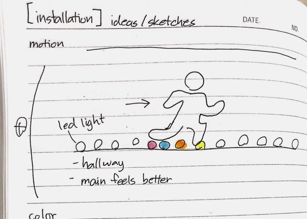 The purpose of the motion station is to collect movement data from MICA students. It was installed in the Fox Building, a high-traffic area for students, and utilized a camera sensor to capture their movements, collecting movement data. The gathered data was then visualized, transforming student activity into a dynamic representation.