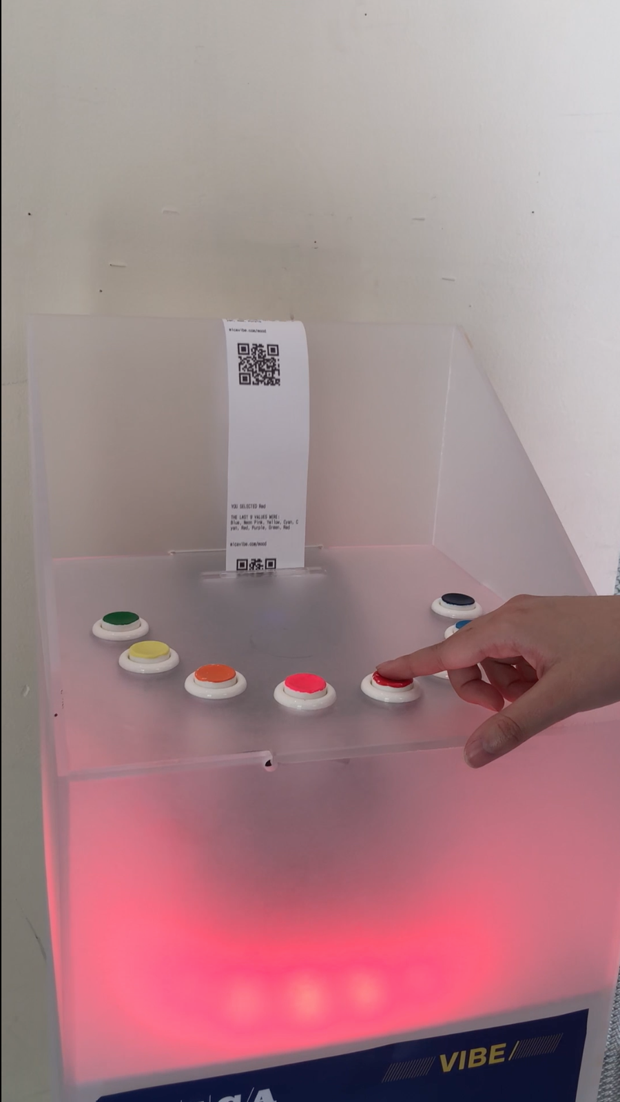 A mood station was installed at Cafe Doris, designed with simple buttons and colors. It posed a straightforward question: "What color are you feeling today?", allowing MICA students to express their feelings through color selection. The collected data was then visualized and transformed into a cover material, representing the emotional trends of the participants.