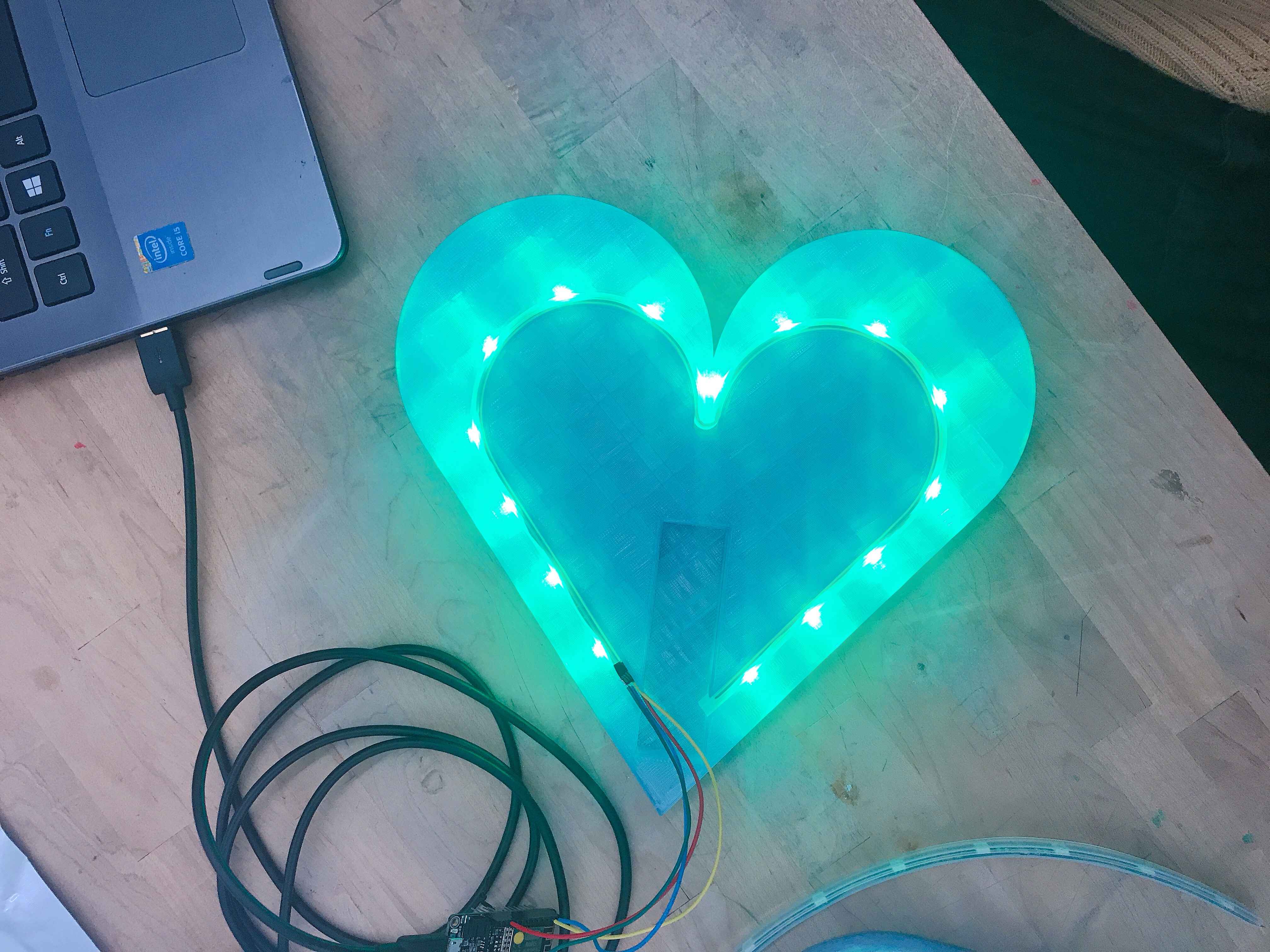 The love station, representing the exchange of the love between each station datas, is created by 3D printed hearts printed with PLA filaments with carved in channels for the LED strips, and pulses data exchanges. Send Love Stations can be found in Fox ground floor window, Brown second floor window, nearby Main Station Sound Station, nearby Lazurus Sound Station, and in Dolphin Building.